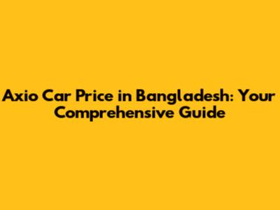 Axio Car Price In Bangladesh: Everything You Need To Know
