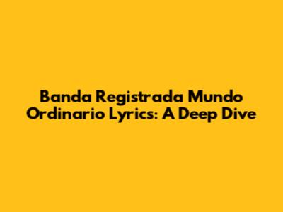 Banda Registrada Mundo Ordinario Lyrics: A Deep Dive