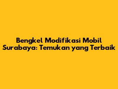 Bengkel Modifikasi Mobil Surabaya: Temukan Yang Terbaik