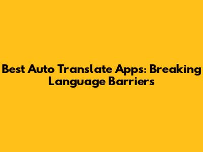 Best Auto Translate Apps: Breaking Language Barriers