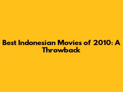 Best Indonesian Movies Of 2010: A Throwback