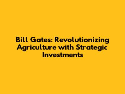 Bill Gates: Revolutionizing Agriculture With Strategic Investments