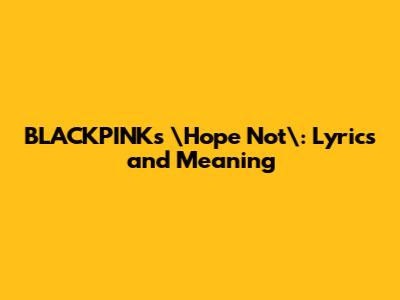 Hey guys! Let's dive into one of BLACKPINK's most heartfelt songs, "Hope Not." This track is a total feels trip, and we're going to break down the lyrics and explore what makes it so special. Whether you're a die-hard BLINK or just discovering BLACKPINK, you're in for a treat. "Hope Not" showcases a different side of the group, focusing on raw emotion and vulnerability. So, grab your headphones, and let's get started!