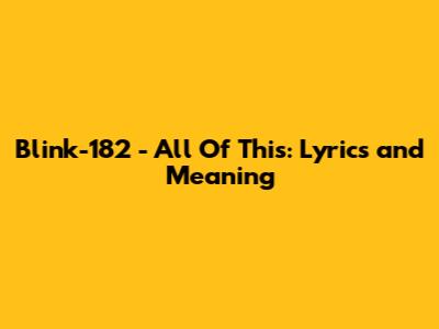 Blink-182 - All Of This: Lyrics And Meaning