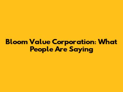 Bloom Value Corporation: What People Are Saying