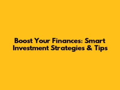 Boost Your Finances: Smart Investment Strategies & Tips