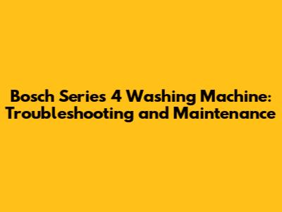 Bosch Series 4 Washing Machine: Problems & Solutions