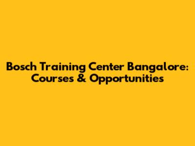 Bosch Training Center Bangalore: Courses & Opportunities