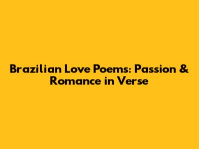 Hey guys! Today, we're diving headfirst into the beautiful world of Brazilian love poems. Get ready to explore some verses that capture the heart, soul, and fiery passion that Brazilian poets are known for. We'll be looking at classic and contemporary works, dissecting what makes them so special, and understanding why these poems continue to resonate with readers across the globe. So, grab a comfy seat, maybe a cup of coffee (or a caipirinha, if you're feeling adventurous), and let's get started!