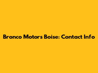 Bronco Motors Boise: Contact Info