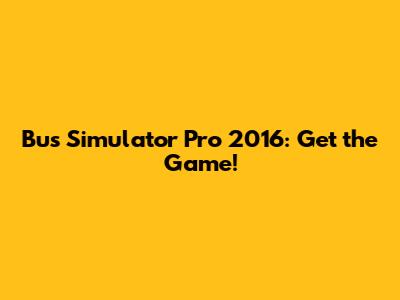 Bus Simulator Pro 2016: Get The Game!
