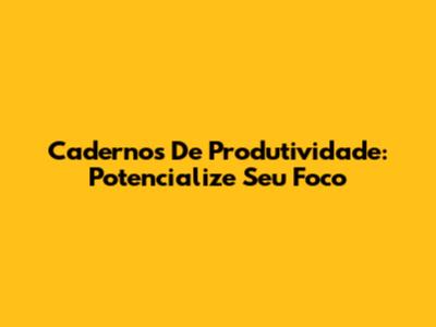 Cadernos De Produtividade: Potencialize Seu Foco