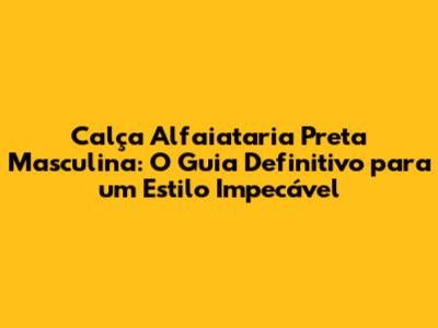 Calça Alfaiataria Preta Masculina: Guia Completo Para Um Visual Impecável