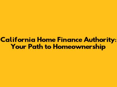 California Home Finance Authority: Your Path To Homeownership