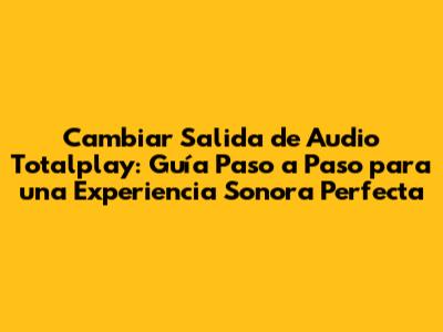Cambiar Salida De Audio Totalplay: Guía Sencilla