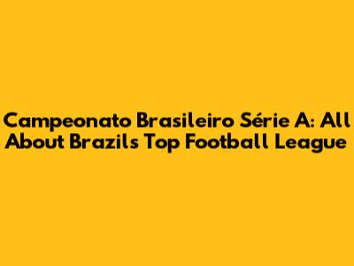 Campeonato Brasileiro Série A: All About Brazil's Top Football League
