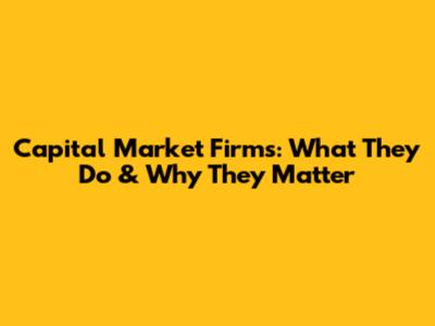 Capital Market Firms: What They Do & Why They Matter