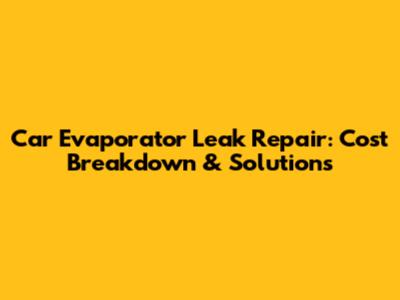 Car Evaporator Leak Repair: Cost Breakdown & Solutions