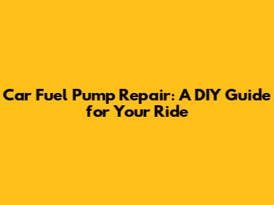 Car Fuel Pump Repair: A DIY Guide For Your Ride