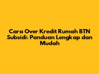 Cara Over Kredit Rumah BTN Subsidi: Panduan Lengkap Dan Mudah