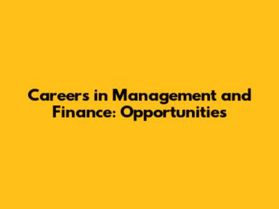Careers In Management And Finance: Opportunities