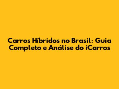 Carros Híbridos No Brasil: Guia Completo E Análise Do ICarros