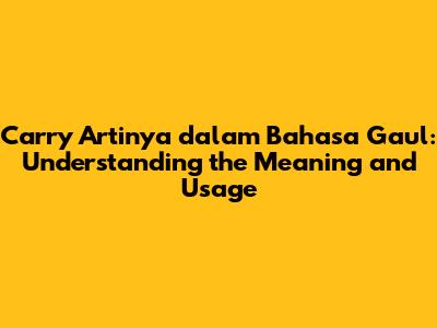 Have you ever heard the word "carry" being thrown around in online games or casual conversations and wondered what it means? Well, you're not alone! The term "carry" has made its way into Indonesian slang, especially among gamers and young people. In this article, we'll dive deep into carry artinya dalam bahasa gaul, exploring its meaning, origin, and how it's used in everyday conversations. So, let's get started and unravel the mystery of this trendy slang word!