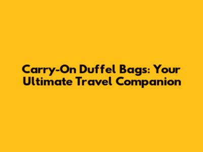 Carry-On Duffel Bags: Your Ultimate Travel Companion