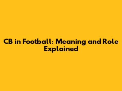 CB In Football: Meaning And Role Explained