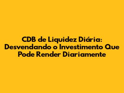 CDB De Liquidez Diária: Entenda Tudo!