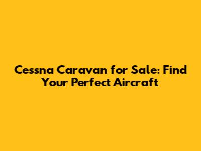 Cessna Caravan For Sale: Find Your Perfect Aircraft