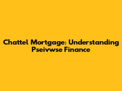 Chattel Mortgage: Understanding Pseivwse Finance