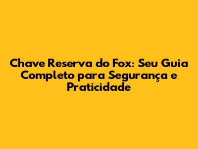 Chave Reserva Do Fox: Guia Completo E Dicas Essenciais