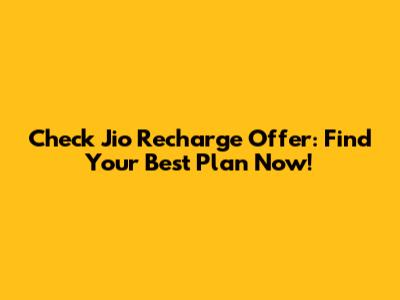 Check Jio Recharge Offer: Find Your Best Plan Now!