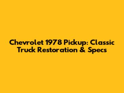 Chevrolet 1978 Pickup: Classic Truck Restoration & Specs