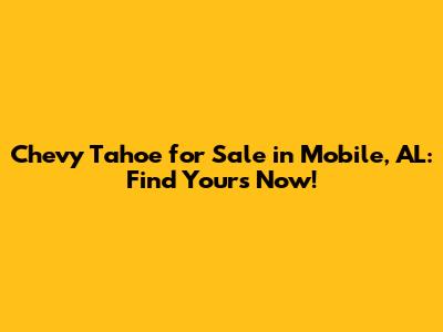 Hey guys! Are you on the hunt for a Chevy Tahoe for sale in Mobile, AL? You've landed in the right spot! Finding the perfect vehicle can be a journey, but we're here to make it as smooth as possible. Let's dive into why the Chevy Tahoe is such a fantastic choice, what to look for when buying one in Mobile, AL, and how to snag the best deal.