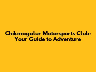 Chikmagalur Motorsports Club: Your Guide To Adventure