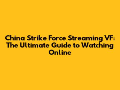 Hey guys! Are you looking to dive into the action-packed world of China Strike Force? You've come to the right place! In this article, we're going to break down everything you need to know about streaming "China Strike Force" (in VF, or French version) online. Whether you’re a die-hard fan or a newbie eager to explore this thrilling movie, we’ve got you covered. Let’s get started!
