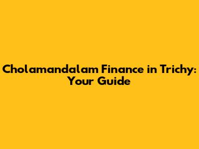 Cholamandalam Finance In Trichy: Your Guide
