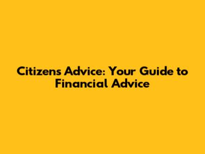 Citizens Advice: Your Guide To Financial Advice