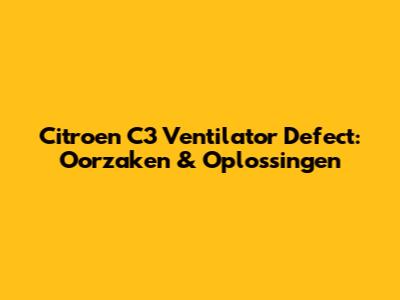 Citroen C3 Ventilator Defect: Oorzaken & Oplossingen
