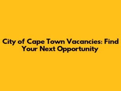 City Of Cape Town Vacancies: Find Job Openings