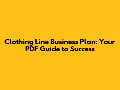 Clothing Line Business Plan: Your PDF Guide To Success