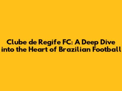 Clube De Regife FC: A Deep Dive Into The Heart Of Brazilian Football