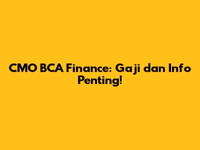 CMO BCA Finance: Gaji Dan Info Penting!