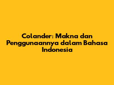 Colander: Makna Dan Penggunaannya Dalam Bahasa Indonesia