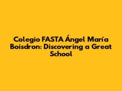 Hey guys! Today, let's dive deep into everything you need to know about Colegio FASTA Ángel María Boisdron. If you're looking for an awesome school with a rich history, strong values, and a commitment to excellence, you’ve come to the right place. Let’s explore what makes this colegio stand out from the crowd. Whether you're a parent, student, or just curious, this comprehensive guide will give you all the essential information.
