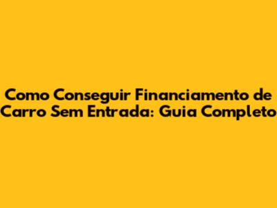 Como Conseguir Financiamento De Carro Sem Entrada