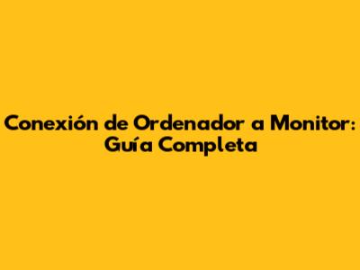 Conexión De Ordenador A Monitor: Guía Completa