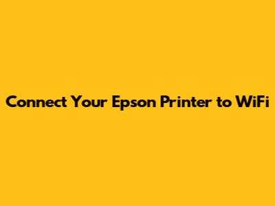 Connecting Your Epson Printer to WiFi: The Basic Method